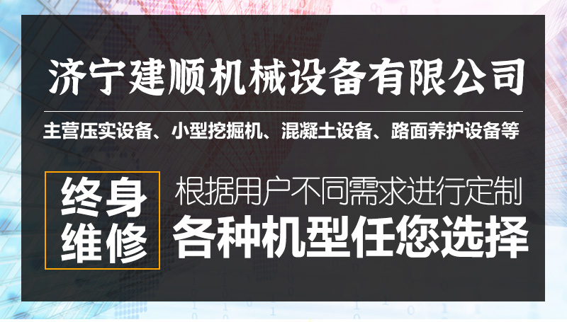 濟寧建順機械設備有限公司座落于古老而文明的孔孟之鄉、禮儀之邦的歷史文化名城——山東濟寧;主要經營壓實設備、小型挖掘機、混凝土設備、路面養護設備等產品的的研發、制造、銷售、服務和配件供應。公司成立以來,在全國各地參與大量實體工程,已在多個省區取得優異工程業績,合作眾多客戶,銷售多臺設備,產品遍及全球各地及各行業。我公司現有多名專業工程師,在不斷吸取國內外經驗的基礎上,獨自研發和改進現有產品,各類設備均具有操作方便,堅固耐用,降低維修率四成,工作效率可提高兩成以上等特點,無不選用質量可靠的配套零部件,生產過程中嚴格按照標準來精心加工、檢測和實驗,設計合理,性能優良,可靠性強,遠超于同行業產品。
