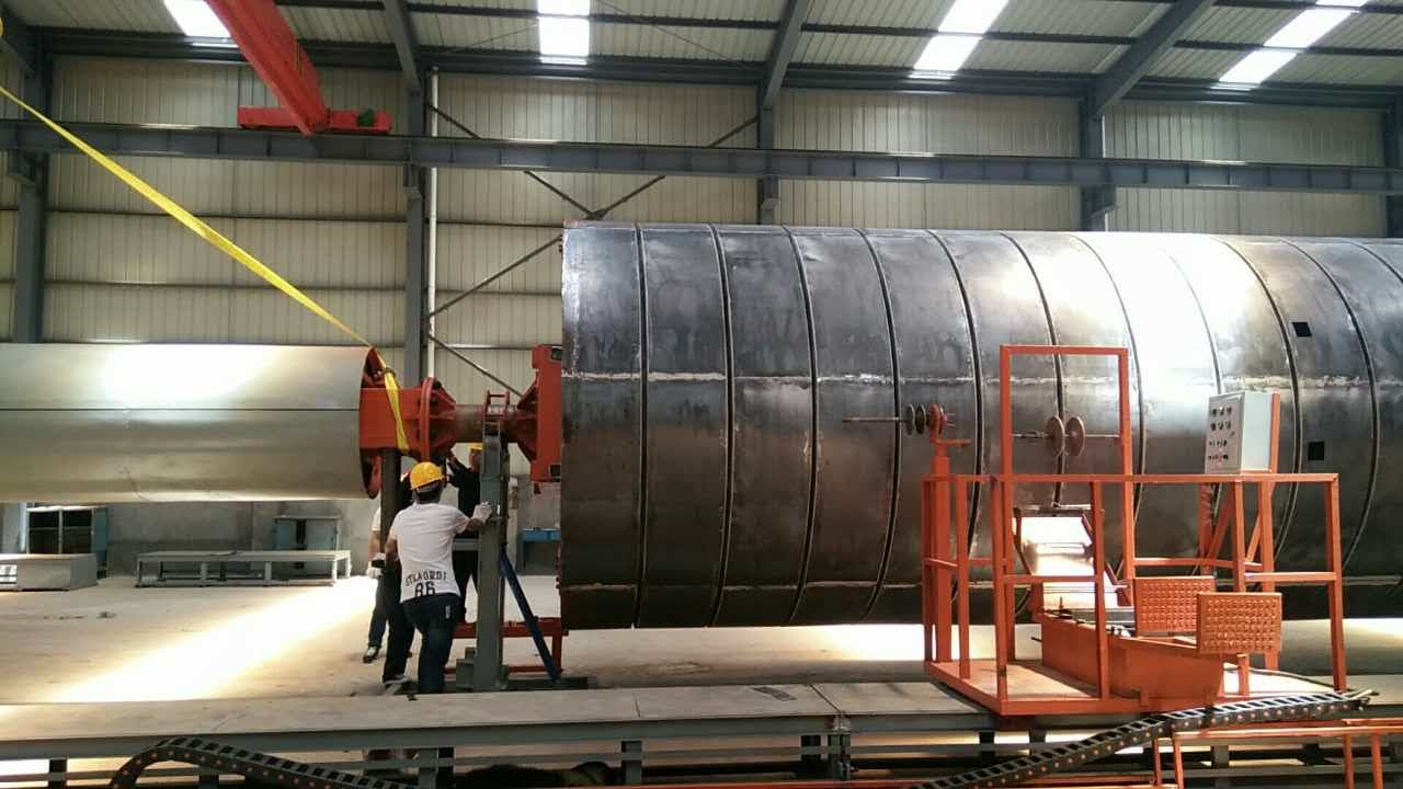 3、玻璃鋼化糞池一體成型內加筋設備一般采購2套設備能夠滿足從4-100立方的生產,直徑分別是3200mm(40-100立方)\2300mm(15-30立方)\1800mm(4-12立方),2套設備占地15米X35米,車間如果上行車高度必須大約6米;針對一些客戶廠房高度小于6米的,我們可以不用行車脫模,制造一個升降、前進后退的底盤小車,解決脫模的問題。